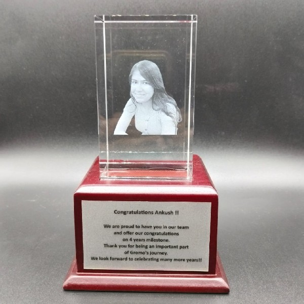 Crystal Trophy With Wooden Base LED